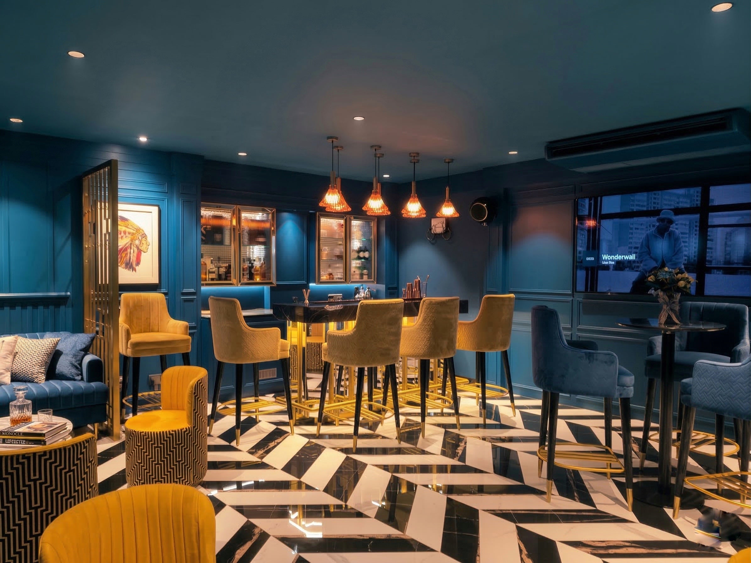 By layering warm, amber-hued pendant lighting against a deep, jewel-toned palette, we create an atmosphere that feels both expansive and exclusively private.